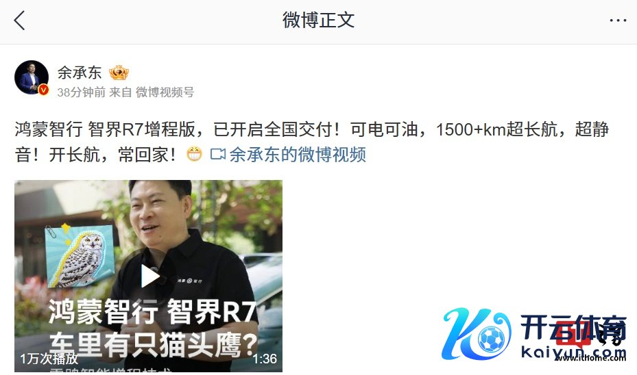 IT之家 1 月 5 日音问尊龙凯时体育,华为常务董事、末端 BG 董事长、智能汽车惩处决策 BU 董事长余承东本日发文秘书,鸿蒙智行首款轿跑 SUV—— 智界 R7 增程版汽车开启寰宇请托。