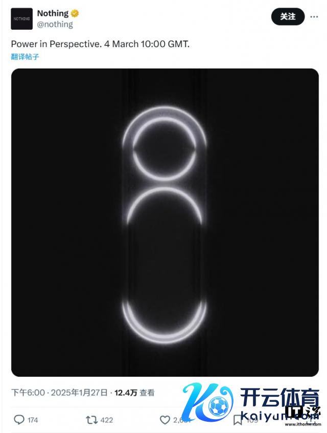 IT 之家 1 月 27 日音讯,Nothing 当天在 X 平台发布了一段预报,展示了其下一款智高手机可能领有的相机模块或"象征界面",推文中还裸露了可能的作为口号和日历 —— 格林尼治时候 3 月 4 日上昼 10 时(IT 之家注:北京时候 3 月 4 日 18 时)。