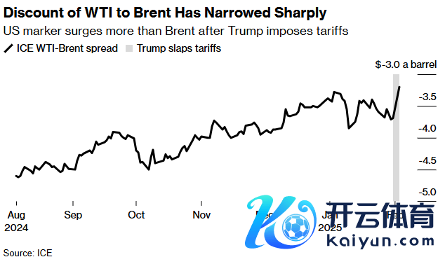 商场大批以为,关税将导致加拿大和墨西哥的原油入口中断,从而推高了好意思国原油价钱。同期,对关税可能拖累大家经济增长的担忧也对布伦特原油价钱产生了更大影响。