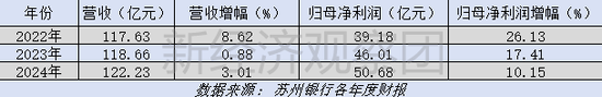 前不久,苏州银行对外皮露了2024年度功绩快报。数据骄贵,苏州银行2024年杀青营收122.23亿元,同比增长3.01%,杀青归母净利润50.68亿元,同比增长10.15%。